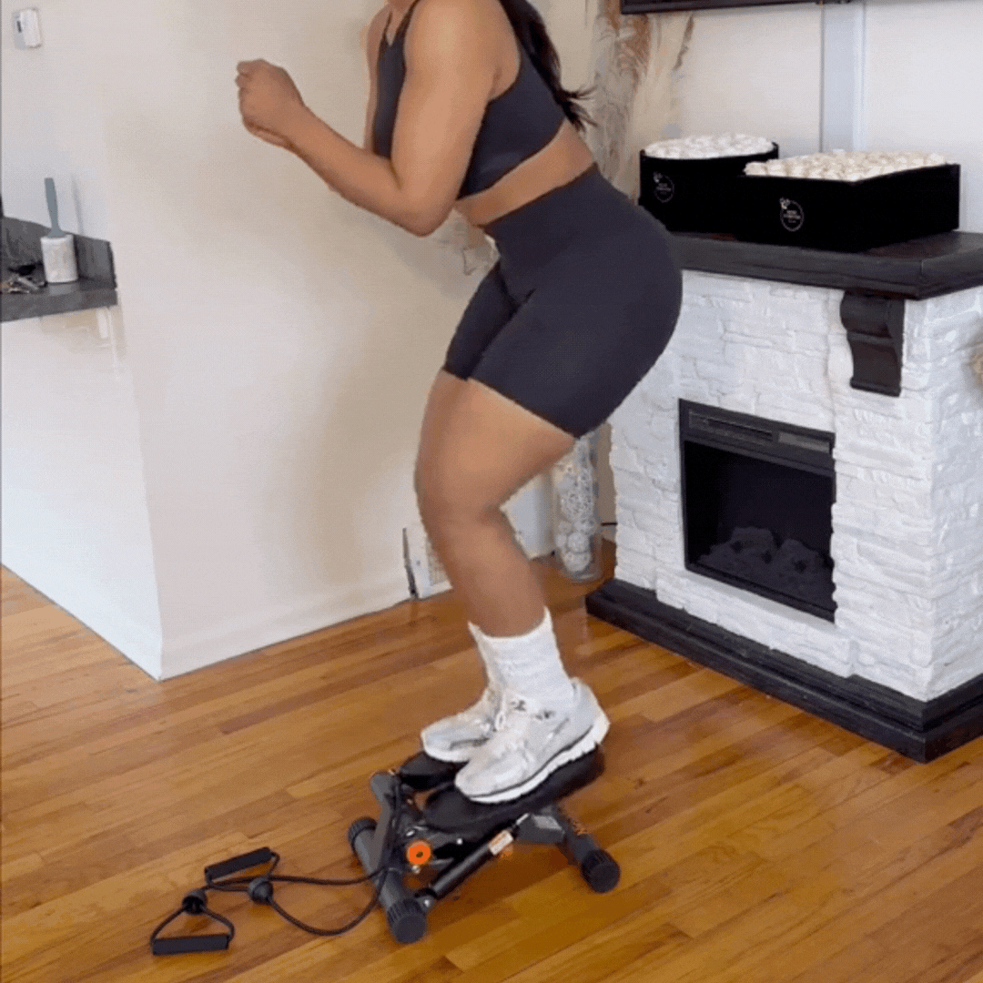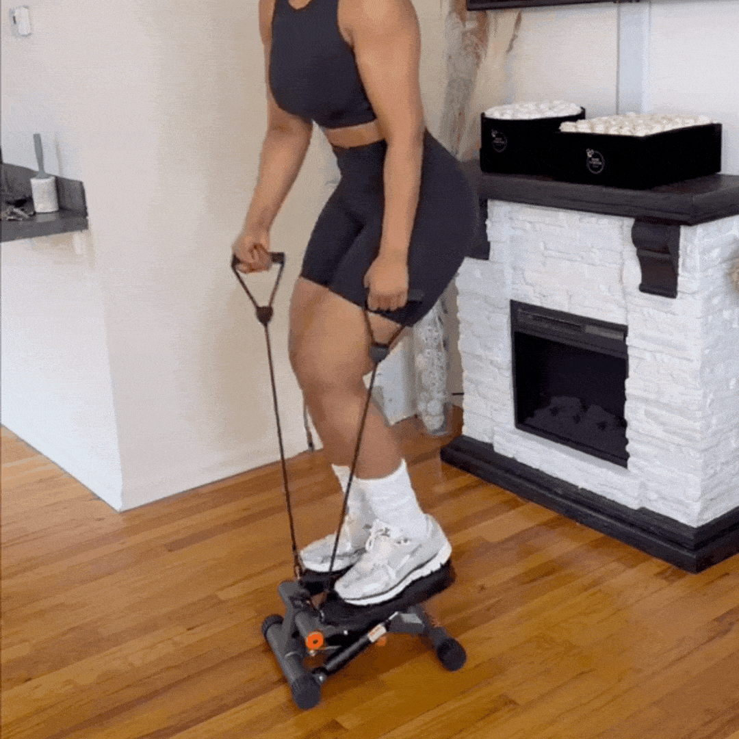 No need for a bulky treadmill or gym membership. This mini twist stepper fits in your home and delivers a cardio + strength workout in one.