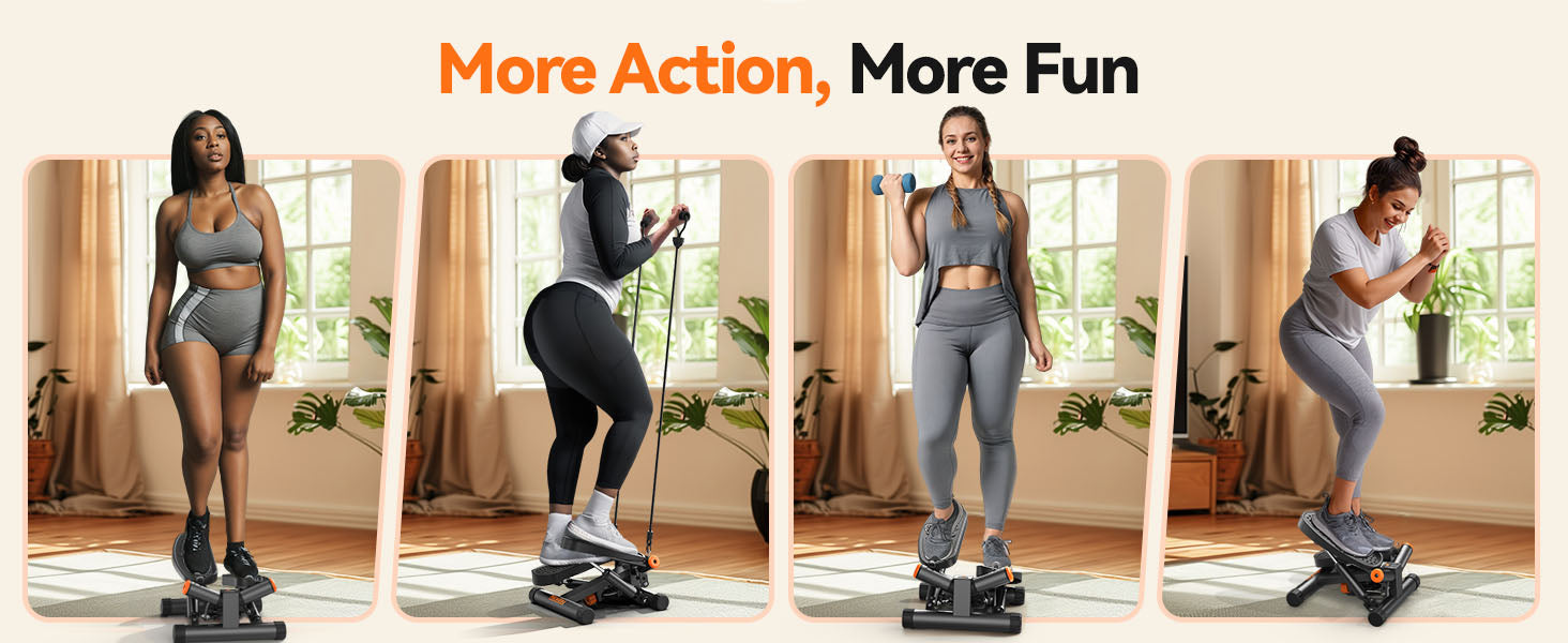 Step, twist & tone — target your legs, glutes, and arms at the same time. Compact design, powerful results.